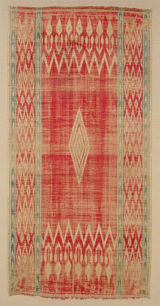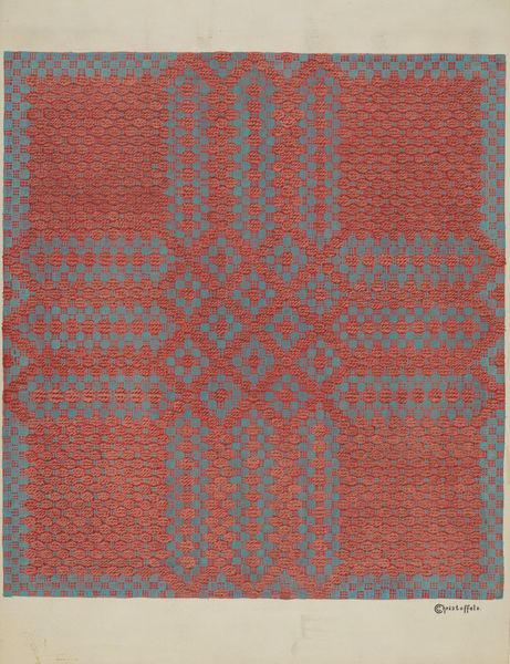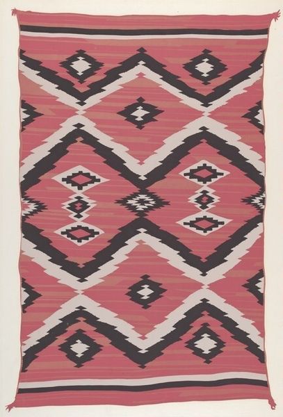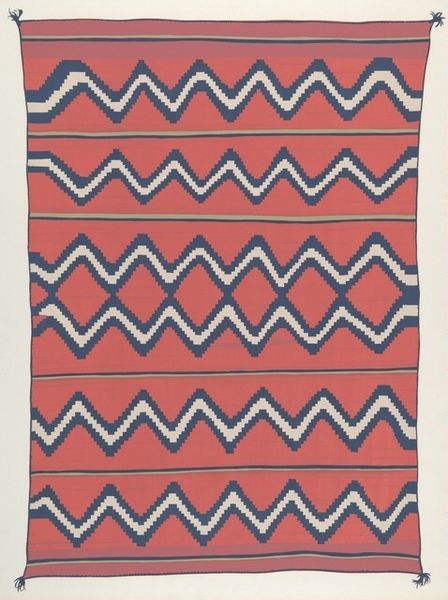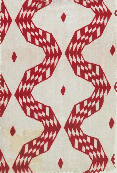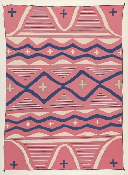 Louie H. Ewing made this print, Plate 11, sometime in the twentieth century. The image has a beautiful flat application of colour; you can really see the process. The patterns give the sense that it could be a quilt design or a blueprint for a rug. I am drawn to the diamond shapes that zip-zag across the salmon coloured background. The dark blue and white add drama and depth, but what really grabs my attention are the plus signs, floating in the middle of the diamonds. They're not quite symmetrical, giving the piece an imperfect, handmade quality that I find very appealing. Ewing has a similar approach to Josef Albers, who also worked with flat blocks of colour and geometric shapes. Both artists share an interest in how simple forms and colours can create dynamic visual experiences. Ultimately this piece, with its nods to textiles and geometric abstraction, is a reminder that art is always in conversation with itself, borrowing, riffing, and remixing ideas across time.