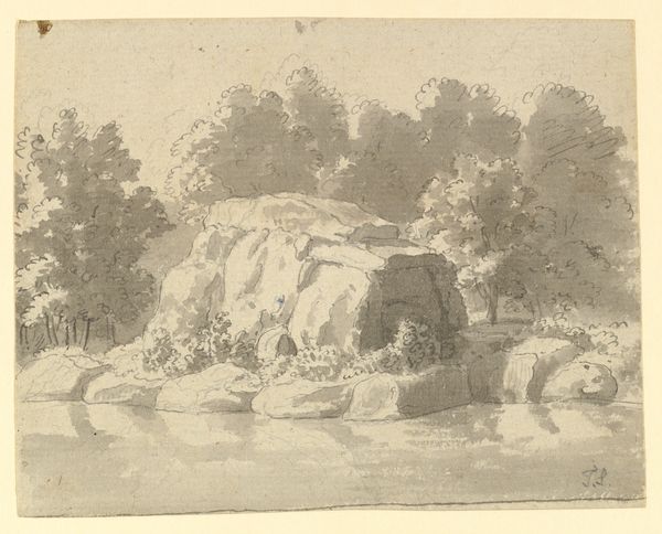 Editor: This is Andrew Fisher Bunner’s "Below Fawn's Leap, Catskill Mountains; and Above the Bridge," created in 1866 using pencil. It's a very delicate pencil sketch; it has an ephemeral, almost dreamlike quality to it. What strikes you most about the formal qualities of this work? Curator: I am drawn to the intrinsic interplay between light and shadow, and how Bunner exploits the monochromatic scale of graphite. Notice the careful gradations used to define form; this imbues the depicted landscapes with a sense of volume. The composition's upper and lower registers invite comparison—consider how the upper image foregrounds distance through recessive layering. Does the bridge in the lower study offer an assertion? Editor: That’s interesting. I hadn’t considered how the two compositions invite you to consider the contrast between depth and, like, material construction. The bridge appears much closer than the river below the Fawn’s Leap. Could you tell me how the visual composition influences our reading of this work? Curator: Indeed. Observe how Bunner employs linear perspective in the upper portion to create depth, then how he positions solid, nearly geometric shapes in the foreground of the second composition. He constructs each scene around visual elements, line, value and texture; not storytelling or emotion. What emerges for you when examining Bunner's utilization of pencil alone to render these complex natural environments? Editor: Thinking about how little color there is makes me appreciate the subtle gradations even more, especially in how the light reflects off the water. I definitely see now how Bunner is inviting a deeper look at the art of landscape and materiality. Curator: Exactly. Through careful assessment, one might start to discern more broadly his structural considerations. The simplicity belies, upon deeper inspection, his formal engagement. Editor: Well, thank you for providing a direction to sharpen my interpretive strategies.