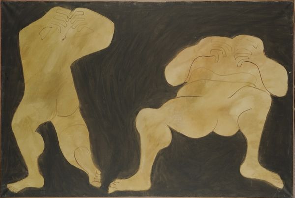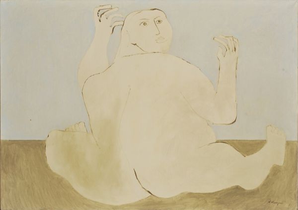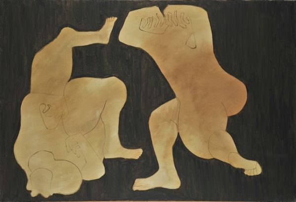 Nikos Nikolaou made this painting, Composition, and to me, it’s like an exercise in subtlety. The figures almost disappear into the background, like ghosts, which can happen when you're trying to find the right value in a painting. Look how the two figures and the moon barely emerge from the ground! This must have taken immense control and care. The colors are muted, almost monochromatic, which adds to the dreamlike quality. Notice the texture of the paint; it's thin and washy, allowing the surface of the canvas to peek through, this creates a sense of openness. Focus on the hands of the reclining figure, see how they clutch the air? It's these small gestures that give the painting its emotional punch. The work reminds me a little of Giorgio Morandi's still lifes; how he explored color and light and form with the same kind of dedication. Art’s like a visual conversation, and Nikolaou has something profound to say. The muted tones invite you to come closer, look harder. It's a reminder that meaning in art, like in life, is often found in the quiet moments, in the subtle details that we might otherwise overlook.