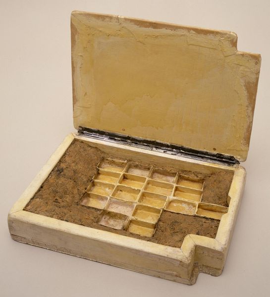 Editor: This is "Cadmium Yellow, light," a pigment manufactured by F. Weber & Company. There’s no creation date, but the label is marked May 18, 1934. It's a jar full of bright yellow powder! How would you interpret this work? Curator: Well, it’s not just yellow powder, is it? It's potential, possibility. Think of all the paintings this jar might have contributed to! It’s a little time capsule, a preserved piece of art history itself. Does seeing it like this change how you view the object? Editor: Definitely! It makes me think about the life cycle of art, from raw material to masterpiece and beyond. Curator: Exactly! It’s a testament to the enduring power of color and the stories behind the art we see.