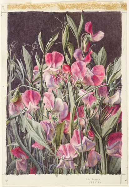 Editor: We’re looking at “Gladioli,” a 1942 watercolor by Raoul Dufy. There’s something so delicate and ephemeral about it. It almost feels like you could breathe and the whole thing might just… float away. What catches your eye when you look at this painting? Curator: It's like a half-remembered dream of summer, isn't it? The colors just sing—rose, lilac, a whisper of emerald. Dufy's world wasn't always this airy, you know. Painted during the war, this offers pure escape. The way he lets the colors bleed and dance... tell me, do you feel the flowers are truly grounded or floating? Editor: Definitely floating! I mean, you can almost see the individual brushstrokes, but the flowers themselves lack a certain… weight. Is that on purpose, do you think? Curator: Absolutely! Dufy often separated line and color. See how the black outlines are almost playful, independent of the color washes? It creates that sense of lightness, of freedom, a joyful, defiant act in a time of darkness, almost like he’s saying "even in chaos, beauty can bloom." Don’t you think there's an inherent optimism in that choice? Editor: That's such a fascinating point about his intention during wartime! I hadn't thought of it that way. It reframes the whole painting for me. Curator: It does for me too! It is a dance to discover those inner secrets and a dance to watch his work be transformed! There’s so much beneath the surface, just waiting for us to discover. What do you make of impressionism? Editor: It seemed lighter to me at first, now it carries more weight than I thought. Curator: Same for me! What an interesting journey this has been, thank you!