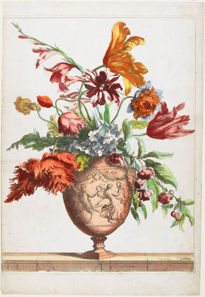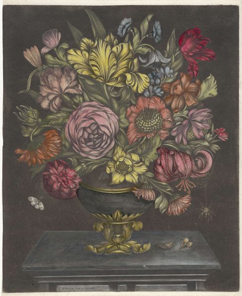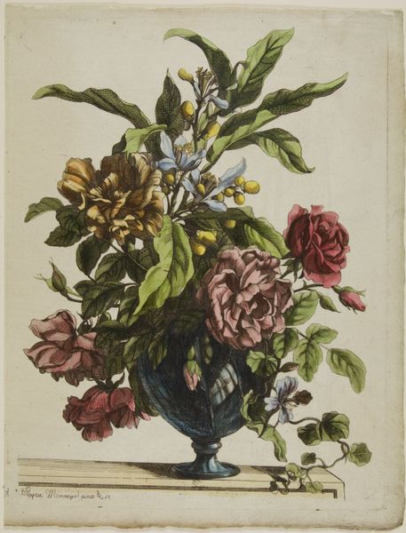 Louis Marin Bonnet created this print, Bouquet of Roses, Larkspur and Convolvulus, with etching and aquatint, capturing nature's beauty. Observe how the arrangement of flowers serves as more than mere decoration. Roses, emblems of love and beauty since antiquity, coexist with larkspur and convolvulus, which symbolize lightness and affection. These flowers, gathered in a vase, echo the vanitas tradition, reminding us of life's fleeting nature. Yet, consider how these symbols resurface across epochs. The rose, from ancient Greece to Shakespeare, has evoked passion and mortality, evolving through cultural retellings. Similarly, the fleeting beauty of flowers reflects a deep, subconscious awareness of transience, engaging viewers with an emotional intensity that transcends time. These floral motifs demonstrate the enduring power of symbols, constantly reborn through art, influencing our collective memory.