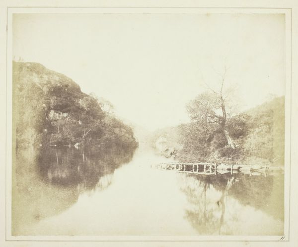 Editor: Here we have George K. Warren's albumen print, "F.W. 4 (Old Chain Battery Walk), West Point, New York," taken around 1867-1868. The monochromatic image, encased in an oval frame, depicts a path carved into the landscape, leading towards water and distant hills. What stands out to me is the steep, almost imposing rock face on the left – it gives the photograph a sense of dramatic perspective. What's your take on this piece? Curator: That's an excellent observation. The dramatic perspective does create an interesting dynamic, but let’s consider the historical context. This photograph was taken shortly after the Civil War. What impact did this national conflict have on photographic practices at the time, especially in how land was portrayed? Editor: Hmm, I suppose photography moved beyond just portraiture to documenting landscapes and maybe even national identity. The Civil War must have reshaped views of the nation. Curator: Exactly. Consider how images of landscape can construct narratives around territory, ownership, and even healing after conflict. Think about the idea of Manifest Destiny. West Point, as a military academy, represents the nation's strength and expansion. Could this idyllic, "untouched" landscape be subtly reinforcing a sense of national pride and a forward-looking vision, despite the recent trauma of war? Editor: So, the landscape isn't just a pretty view, but a loaded image projecting power and recovery? Curator: Precisely. And let's look at the shadows. They could signify a longing to recover from the shadows of the Civil War, hinting that with this walk toward the open view the shadows shorten. Editor: I never would have considered that perspective! It’s amazing how one image can hold so many layers. I see the photograph in a whole new light now. Curator: That’s the beauty of art. Dialogue helps us understand art’s relevance to our lives.