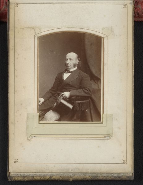 Editor: Here we have a portrait by Disdéri & Co., taken sometime around 1860 or 1861, called "Portret van graaf Albert de Pourtalès". It’s a photograph, of course, and it has a somewhat formal, almost stiff, feel. I'm curious about the context in which it was made. What do you see in this piece? Curator: What I see is a visual articulation of 19th-century power structures, meticulously constructed and captured through the then-novel medium of photography. Consider the subject: a count, positioned in a way that exudes composure and control. But who is controlling whom? Is this simply a neutral documentation, or an active endorsement of the aristocratic gaze? The composition directs our attention; it asks us to contemplate the interplay between social standing, representation, and the emerging dominance of photographic technologies in shaping public perception. Editor: I hadn't thought about it in terms of control. Is there something specific in the photograph that makes you see it that way? Curator: Think about the clothing, the furniture, the carefully arranged pose. Every detail signifies wealth, status, and adherence to societal expectations. It's less about the individual Albert de Pourtalès and more about the symbolic representation of an entire class. And, let's consider the photographer, Disdéri. What was their relationship to the aristocracy? Were they consciously upholding a particular worldview, or were they simply fulfilling a commission? This is about looking beyond the surface. Editor: So, it’s like the photo itself becomes part of the system it depicts? Curator: Exactly. And that makes it important to question whose story is being told and whose is being left out of the frame. Consider for a moment who wouldn't have had access to this form of portraiture, and why. Editor: That's given me a completely different perspective on something I initially saw as just a standard historical portrait. Thanks! Curator: Precisely! And now we're able to consider how photographs can be both historical records and powerful agents in shaping social realities.