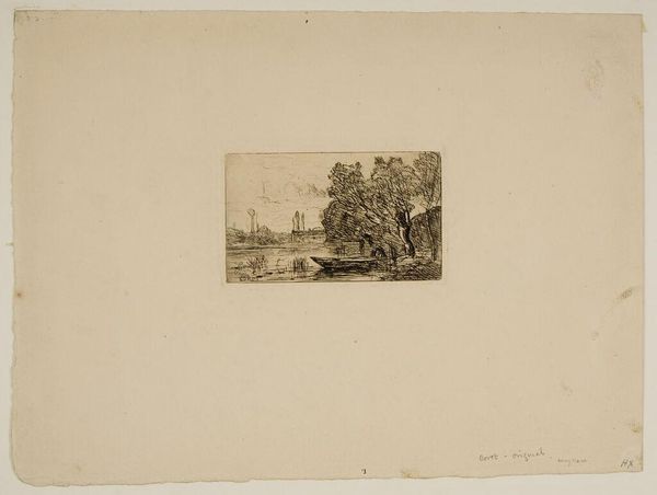 Editor: This is Marius Bauer's "Temple Walls." The etching has a dreamlike quality, like a memory fading at the edges. What can you tell me about the symbolism in this scene? Curator: Bauer’s vision here is fascinating. The temple walls are, of course, symbols of a culture’s spiritual and social identity, but the way he renders them, almost dissolving, suggests the fragility of these structures. Consider the stairs; they represent a path to enlightenment, but are they easily traversed? Editor: So, you are saying the faded look represents cultural decay? Curator: Not necessarily decay, but perhaps the shifting nature of cultural memory. How do we hold onto the past, and what parts do we choose to remember? Editor: That's insightful; I’ll never look at temple walls the same way again! Curator: Indeed, Bauer’s work invites us to contemplate the enduring power, but also the ethereal nature, of cultural symbols.