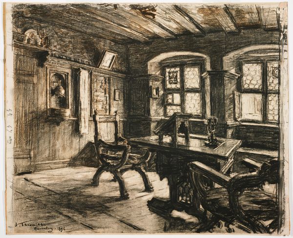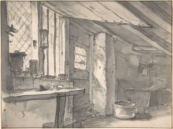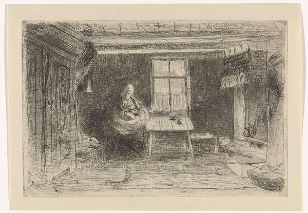 Curator: Editor: So here we have "Smithy", an etching by Elisha Kent Kane Wetherill. It gives me a strong sense of… utilitarian grit, the way the space is depicted, cluttered but clearly functional. What stands out to you in this work? Curator: I see a study in labor. Wetherill isn't just showing us a scene, he's offering insight into the means of production itself. Consider the medium, etching. It’s an inherently laborious process, mirroring the labor depicted within the smithy. The image isn’t just about the tools or space; it’s about the act of making and the social position of labor. Editor: That's interesting. I hadn't considered how the etching process connects directly to the labor represented. Do you think that the lack of a clear date limits how we interpret it? Curator: Not necessarily. While a specific date could pinpoint the context, its absence allows us to consider broader themes of industrial work. This space, regardless of era, reflects the universal human need to produce. Look at the distribution of light. It hits tools and work surfaces, not people. It draws attention to the material reality. Editor: It definitely shifts my perspective. The tools themselves become almost like actors in this space, not just implements. But, I am now curious if Wetherill ever explored themes beyond manual trades in his work? Curator: Wetherill created prints of other spaces too, from domestic scenes to urban landscapes, often showing scenes from everyday life. To further your materialist thinking, research how he may have approached those settings. What details are highlighted? Where are the contrasts in how he chooses to render space and texture? Editor: This conversation made me think about printmaking in an entirely new light – seeing how the medium shapes the message itself. Thank you! Curator: The process illuminates how art mirrors life by focusing on tools and spaces as actors within the scene. Thank you as well.