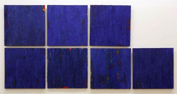 Here is the audio guide script for the provided artwork: This untitled work is by the contemporary Ukrainian artist Tiberiy Szilvashi. Its dominant feature is a field of deep, textured color that invites contemplation. Notice how the surface is built up through layers of paint, creating a tactile quality that is almost sculptural. The painting is largely composed of hues of purple, with subtle variations that suggest depth and movement beneath the surface. Szilvashi's abstraction focuses on the inherent qualities of paint, pushing the boundaries of what a painting can be. You could argue that Szilvashi is deeply engaged in a dialogue with modernist ideas about the autonomy of art. His work challenges the notion of art as a representation, instead existing primarily as a visual and material experience. Consider how the texture and color create a dynamic interplay on the canvas, a sense of unresolved tension that destabilizes any fixed meaning. In its purest form, this abstraction invites endless interpretations, each as valid as the last.