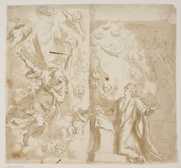 This drawing of a Flying Angel was created by Pomarancio, or Cristoforo Roncalli, in the 16th or 17th century, using red chalk on paper. We can see that the artist used traditional art materials, but also engaged in the craft of draughtsmanship. Looking closely, you can see how the material of the red chalk lends itself to soft gradations of tone, giving the angel a sense of volume and presence. The texture of the paper also plays a role, catching the chalk in its fibers and creating a slightly rough, almost palpable surface. Notice too, how the artist has used a grid to transfer the design onto a larger surface, probably for a fresco on a wall or ceiling. These are the skilled traditions the artist engaged with, alongside that of craft and fine arts. This drawing gives us insight into the labor and intellectual processes of this period. It challenges our conventional expectations of ‘high art’ versus craft, and asks us to consider the social context in which Pomarancio was working.