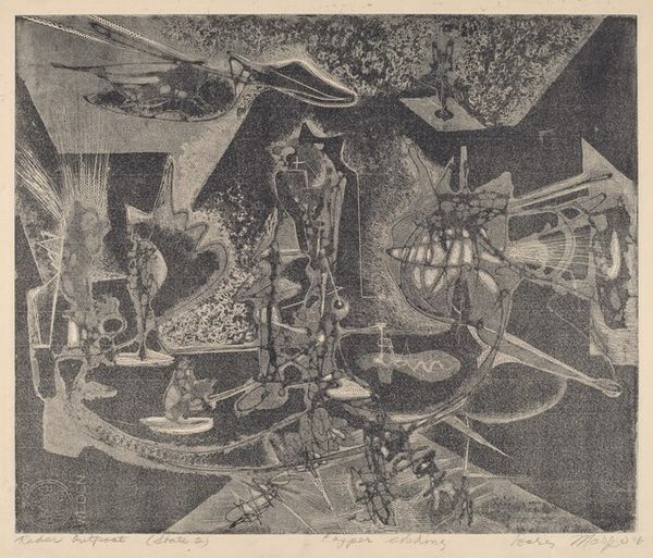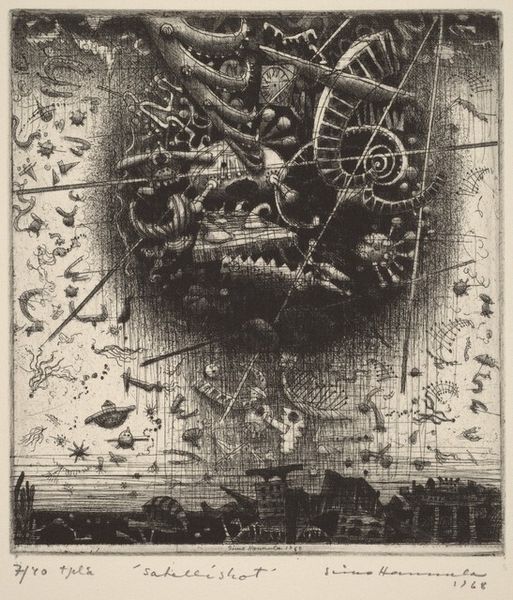 Curator: Aubrey Beardsley created this pen and ink drawing in 1893, titled "Illustration to 'Siegfried', Act II." It depicts a scene from Wagner's opera, a work that certainly preoccupied many artists of the time. What's your initial impression? Editor: There’s an immediate sense of heightened theatricality and darkness. The stark black and white contrast creates an unsettling mood, a dreamlike atmosphere tinged with something sinister. Curator: Absolutely. The monochrome palette intensifies the symbolism at play. Beardsley often incorporated very specific motifs, drawn from mythology and folklore, that lend a mythic quality, don't you think? Editor: Undeniably. Look at how Beardsley frames Siegfried, poised with his instrument, a conduit between worlds it would seem. The sinuous lines, the almost feverish detail... It’s as if the landscape itself is an extension of his internal psychological drama. But there’s also a very mannered quality; it speaks to fin-de-siècle anxieties and decadent tastes. Curator: And Beardsley’s deliberate use of graphic elements reinforces that sense of carefully constructed symbolism. The way the plants frame Siegfried, almost predatory in their elegance, subtly hinting at lurking dangers and temptations in the opera. Editor: Which gets back to the social context. Beardsley was very deliberate about unsettling Victorian sensibilities. He challenged prevailing social norms, sexuality in particular. And the Siegfried story itself is about transformation, power, and perhaps, societal upheaval, as the old order of the Gods makes way for humanity. The politics are implicit, though no less impactful. Curator: And that speaks to Wagner's own complex place in European culture at the time. This piece feels both timely, commenting on cultural movements, and timeless through it’s iconography. It invites viewers to engage with its historical context, of course, but the visual language is compelling in its own right. Editor: A masterful blend of myth, politics, and personal expression indeed. Thank you for those insights. Curator: A pleasure, and thanks for bringing to light that deeper historic angle!