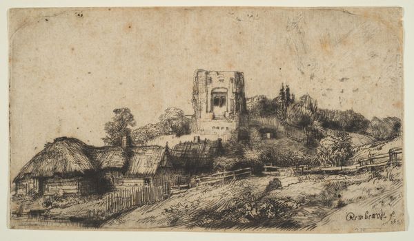 Rembrandt van Rijn made this etching, “Landscape with a square tower,” in the Netherlands, sometime in the mid-17th century. This image of a rural landscape speaks to the prevailing social and economic conditions of the Dutch Golden Age. As the country prospered through trade and innovation, we see a rise in landscape art among a wealthy merchant class looking to celebrate their nation. But this isn't simply a depiction of bucolic charm. The image creates meaning through the cultural associations of its time. The ruined tower, for instance, may reference the instability of human achievement when placed against the enduring power of nature. What makes this landscape particularly modern, however, is Rembrandt’s focus on ordinary life over idealized scenes. To truly understand this work, consider its place within the broader history of Dutch printmaking and its market. Researching Rembrandt’s life, his patrons, and the cultural values of the Dutch Golden Age will provide a deeper context for interpretation. Ultimately, this etching reminds us that art's meaning is always contingent on its social and institutional context.