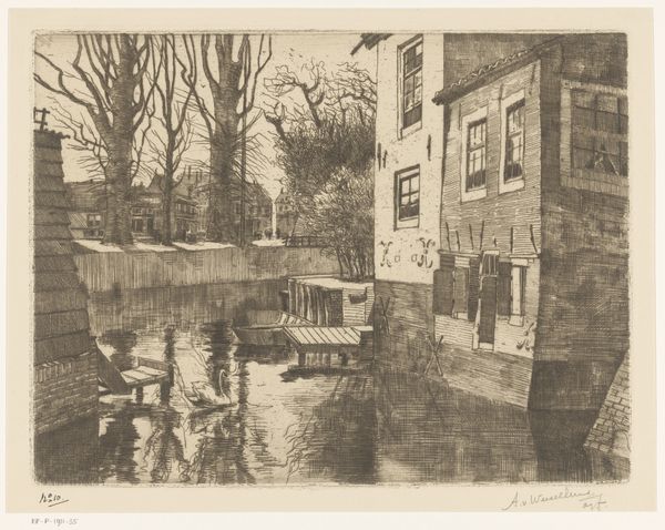 Editor: Here we have Joseph Pennell’s 1916 print, "Evening in the Munitions Country," crafted with graphite. It gives me a somber feeling. The city seems to fade into the background under a cloud of smoke. What grabs your attention in this piece? Curator: Well, the title sets the stage, doesn’t it? 1916 – smack in the middle of the First World War. Munitions mean industry, but also… destruction. For me, this isn't just a cityscape; it’s a portrait of a world at war. See how those delicate graphite lines create a kind of hazy, almost ethereal quality? It's like Pennell is showing us not just the factories, but also the unease and uncertainty of the time. Does that resonance with you at all? Editor: I do notice how the print style feels transient; it's almost like a sketch one might jot down rather than something set in stone, literally. The plumes of smoke rising overhead really enhance that effect. Curator: Exactly! Pennell isn’t romanticizing the industrial age here. He's acknowledging its grim realities, don't you think? The "evening" of the title further accentuates that sense of things drawing to a close, a twilight for a whole era. And I find the choice of graphite perfect for expressing that subtlety. Did you notice how many chimneys are in the piece? What do you make of this repetition? Editor: That brings to mind the sheer number of factories dedicated to weaponry, doesn't it? Everything about this print has to do with munitions; very little stands apart from that singular notion. The visual motif creates a heavy mood... Curator: The visual motif and the physical landscape. It makes one think about the lives intertwined with those factories, doesn’t it? Thanks for pointing that out. I think I noticed some new perspectives after speaking about this today! Editor: Me too! It feels different now that I know some historical context; there is an implied narrative, a subtext that conveys its gravity and relevance more accurately.