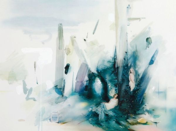 Vasiliy Ryabchenko's "Пляж" is an ocean of soft blues, executed with a playful openness to process. The colour palette is restrained, with the barest hint of warm tones. It's like memory itself, softened and hazy. Up close, the materiality of the painting is striking. See how Ryabchenko uses thin washes of paint, allowing the texture of the surface to peek through? The brushstrokes are loose, gestural, almost scribbled in places. Those dark linear shapes looping around in the upper left, they're so free, so unburdened by representation. They remind me of Cy Twombly's poetic scrawls, or maybe even some of Joan Miró’s biomorphic forms. Like them, Ryabchenko isn't interested in capturing a literal scene, it's more about evoking a feeling, an atmosphere. A sense of place, yes, but also a sense of being. Art isn’t about answers, it’s about the ongoing conversation.
