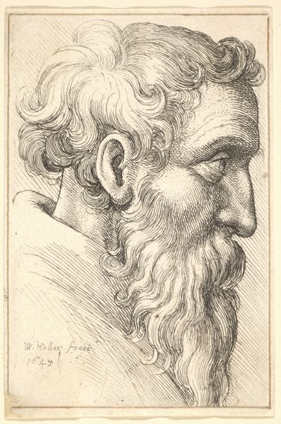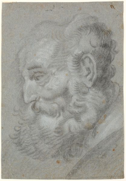 Editor: Here we have "Bust of a Bearded Man," a drawing made with ink on paper, dating from around 1595 to 1645 by Guido Reni. There’s something very classical, but also very raw in its unfinished quality, that I find appealing. How do you interpret this work? Curator: The lines, aren't they striking? The hatching gives form to more than just a bearded man; it evokes the very notion of wisdom accumulated over time. Consider the beard itself: throughout history, it’s been a powerful symbol of maturity, knowledge, and even virility. This image calls on those deeply rooted associations. Editor: So you’re saying Reni consciously employed these established symbols? Curator: Whether conscious or intuitive, Reni taps into a visual vocabulary that resonated strongly within his cultural context, and still speaks to us today. The unfinished quality only heightens the intensity. The gaze, though averted, carries a weight of experience, perhaps even a burden of knowledge. How does that strike you? Editor: I see what you mean. The incompleteness adds to the sense of introspection. It’s not just a portrait, but a glimpse into the sitter’s inner world. Curator: Precisely. It invites our projection, our own understanding of what it means to carry history within us. Even the rapid strokes of the ink contribute. Each one signifies speed, which symbolizes temporality, the speed of change throughout time. Editor: I hadn’t considered the temporality aspect before, but that makes perfect sense. This has deepened my understanding of the symbols involved. Curator: And for me, it’s a potent reminder of art’s ability to compress generations of cultural meaning into a single image. It’s not just a likeness, but an icon.