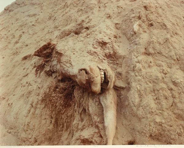 Curator: Keith Arnatt's photograph, "Pictures from a Rubbish Tip," presents... well, precisely that. My initial reaction is a visceral cringe. Editor: Yes, there’s a deliberate challenge to our sensibilities, isn’t there? The raw meat, glistening under what I imagine is harsh light, evokes a sense of waste, but also something primeval. Curator: I see what you mean. It's interesting that Arnatt, known for his conceptual work, turns to something so…literal, yet loaded with symbolic weight. It makes you question the act of consumption, and what society deems disposable. Editor: Exactly. Meat, particularly in Western culture, carries so many loaded meanings – prosperity, virility, but also death and decay. And here it is, exposed in its discarded state, forcing us to confront those associations head-on. Curator: And perhaps to reflect on our own participation in this cycle. It’s a messy, uncomfortable image, but that’s precisely its power, I think. Editor: Indeed. It lingers, doesn't it? A stark reminder of what we choose to ignore.