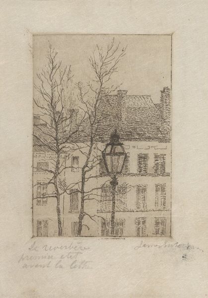 Editor: Here we have Frans Schikkinger’s etching, “Huis met de Hoofden te Amsterdam,” dating between 1848 and 1902. It depicts a grand building reflected in the water, and what really strikes me is the incredible detail in the facade. What do you make of it? Curator: For me, it's about more than just meticulous detail. Look how Schikkinger captures the atmosphere. See the way the light dances on the water and those almost skeletal trees hinting at a cold Amsterdam winter? The 'House with the Heads' itself is brimming with stories - imagine all the lives lived within those walls. Do you sense how he makes time itself almost tangible? Editor: I do, it almost feels… nostalgic? But also a little… reserved, I guess? Curator: Reserved, perhaps, but consider the era. Realism was less about overt emotion and more about documenting the world as it was seen, which could explain that impression. Schikkinger wasn’t trying to be flamboyant. Instead, he was painstakingly crafting a snapshot of Amsterdam’s architectural soul. Makes you wonder, what did he hope future generations would see? Editor: I never thought about it like that, almost like a time capsule made of ink and paper. It really is more than just a pretty picture of a building, isn’t it? Curator: Exactly! Art has this remarkable ability to transport us, if we're willing to go along for the ride, anyway. Editor: Definitely something to remember, thank you! Curator: My pleasure entirely. There’s always a new angle when we keep our minds open, isn't there?