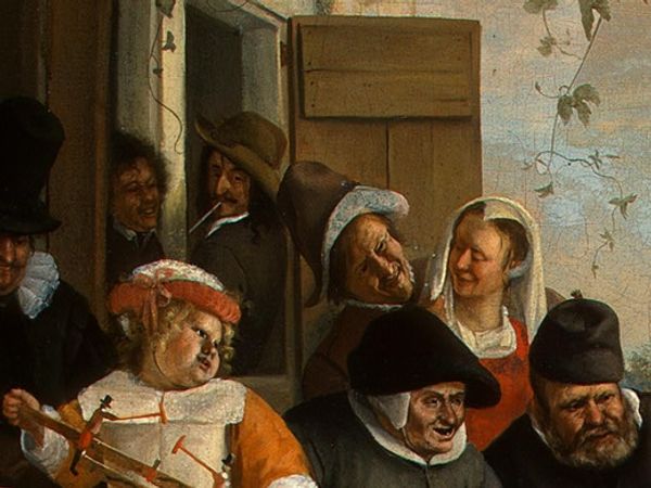 Gabriel Metsu's "The Sleeping Sportsman", painted in the mid-17th century, employs oil on canvas to capture a scene of leisure and perhaps, overindulgence. Consider the materiality of the painting itself. The careful layering of pigments, ground from minerals and mixed with oil, mimics the textures of the scene—the rough brickwork, the soft fur of the dog, and the sheen on the sportsman's velvet jacket. Oil paint allowed Metsu to blend colors seamlessly, creating a sense of depth and realism. The act of painting, a skilled craft in itself, becomes a commentary on labor and class. While the sportsman sleeps, surrounded by signs of his wealth and leisure, we might consider the unseen labor that sustains this lifestyle. The servant girl with her jug, the hunters who procured the game, all play a role in this tableau of affluence. Metsu's choice of materials and his masterful technique elevate this genre scene, blurring the lines between craft and fine art. They invite us to contemplate the social dynamics embedded within the everyday.
