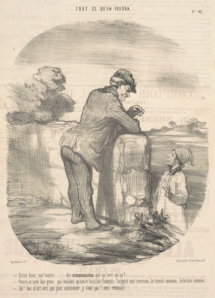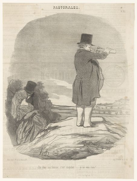Honoré Daumier made this lithograph, Monsieur dessine un paysage, in 19th century France, using lithographic crayon and transfer paper on paper. Here, Daumier satirizes the figure of the landscape painter, a figure of some social importance at the time. Daumier worked for the illustrated satirical journal Le Charivari. In this print, he shows us an artist sketching "en plein air," that is, out of doors, in front of his subject. He is being scrutinized by a group of middle-class onlookers. Daumier’s commentary undermines the notion of the artist as an inspired figure, set apart from the bourgeoisie. Instead, he suggests that the artist's activity is itself a spectacle, subject to bourgeois judgment. To understand Daumier’s print more fully, we might look at other images he produced for Le Charivari and consult publications of the time to find out more about the artistic institutions and social attitudes that shaped his work. Remember that the meaning of art is always dependent on its social context.