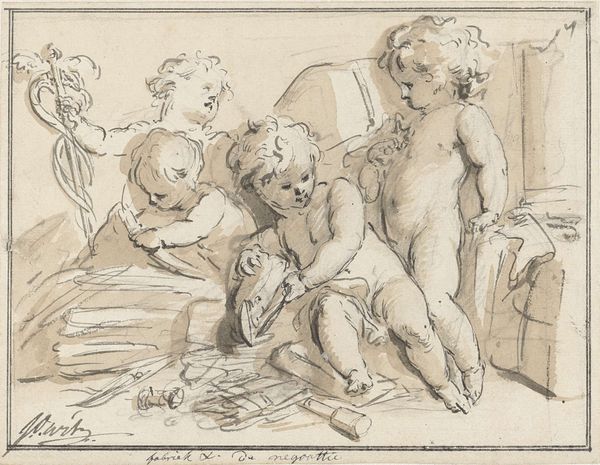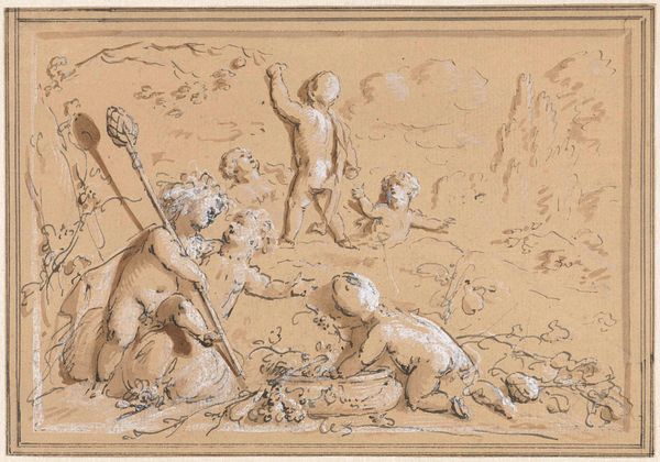 Jacob de Wit’s “Six Amourettes Making Wine,” presents us with a scene of cherubic figures playfully engaging in the wine-making process. Created by a master of the Dutch Golden Age, the image is a charming example of the period's fascination with classical themes blended with genre scenes. In the 17th and 18th centuries, the Dutch Republic was a major center for trade and artistic innovation, and the rising merchant class fueled a demand for art that reflected their aspirations. The image’s playful portrayal of labor, here carried out by baby angels, suggests an idealized vision of work, perhaps designed to appeal to the refined tastes of a wealthy patron. The wine trade itself was a major economic driver, and the artwork may subtly celebrate Dutch commercial success. To understand it better, we could research the patronage networks and art market of the period. This artwork offers insight into the social values and economic structures of its time.