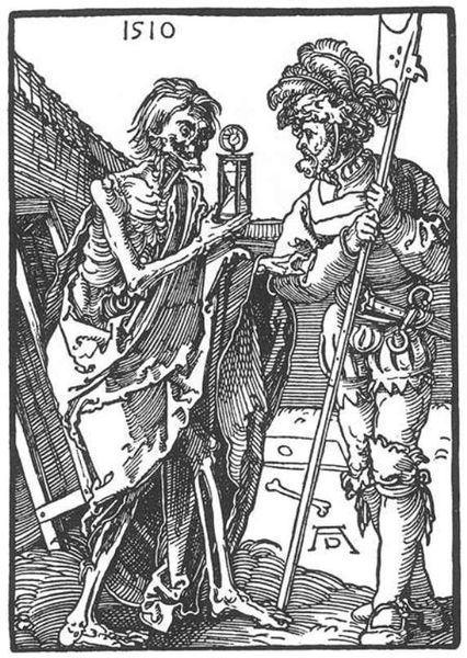 Curator: Look at this beautiful, small engraving. It’s Albrecht Dürer's "Christ Appears to Mary Magdalene," created in 1511. The scene is so incredibly detailed! Editor: My first impression? Intense light. And it's all done with lines, these tiny, precise lines that create such a striking contrast. It feels charged with emotion, too, a quiet, bewildered kind of hope. Curator: Absolutely! Dürer uses the dense hatching to build form, the stark contrasts to intensify the narrative. It's this pivotal moment of recognition, Christ's revelation to Mary Magdalene after the resurrection. Notice the gardener's tool he carries – a rather understated attribute, at first glance. Editor: The figure of Christ almost leaps out, radiant in the dawn. Is that...a spade over his shoulder? And what about Mary's posture? All angles and almost a collapsing feeling—it speaks to the very human vulnerability in the face of the divine. She’s just recognized him after mistaking him for the gardener, and this humble tool transforms in meaning from everyday labor into something… else. Curator: The spade, yes. Dürer often infuses everyday objects with profound symbolism. The surrounding landscape and figures are carefully constructed. We've got the other figures clustered near the tomb, rendered small in the distance. Editor: I wonder what it felt like to see something like this back then? You'd be grappling with faith, and here's Dürer capturing that uncertainty and revelation, but in such a precise, almost scientific way with all those lines. He makes it feel grounded and ethereal simultaneously. I can only imagine it offered folks some clarity. Curator: It really distills a profound moment. This small print holds a vast story, doesn’t it? It also highlights Dürer's talent for rendering light and emotion within a rigid, disciplined structure. Editor: Thinking about all of that work – the hours upon hours to meticulously create this image—I gain a whole new sense of what faith, artistic conviction and visual communication meant for the Northern Renaissance. Curator: Yes, it is such an interesting glimpse. Thank you for those insightful observations!