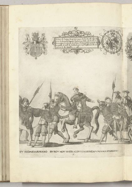 Editor: Here we have "Bazuinen, plaat N," an engraving made by Nicolaas Hogenberg between 1530 and 1536. The line work is so precise, almost delicate, but the subject matter feels powerful. What historical narratives do you see embedded in this work? Curator: This print, with its regimented lines of armed horsemen, speaks volumes about power dynamics in the Northern Renaissance. Beyond the surface depiction of a military procession, consider the social hierarchies it reinforces. Who is given agency here, and whose voices are silenced? Editor: I see that it's definitely portraying a very masculine and militaristic society. Are there any clues that might hint at how women, or other marginalized groups, might have experienced this period? Curator: Exactly! Consider the context of the Reformation and the upheaval it caused. While Hogenberg's image seemingly glorifies martial strength, perhaps we can view it as a document of a society on the cusp of significant change. Were there female figures, like, say, Katharina Zell, who also engaged in political movements through writings that could challenge the dominant patriarchal narratives of their time? Editor: That's fascinating, that’s an avenue that never even occurred to me, about reformist movements and marginalized voices at this time! It’s so important to keep those perspectives in mind when looking at historical artworks. Curator: Absolutely. By viewing the art through a lens informed by social and cultural contexts, and especially in how gender and religion relate to political activism, we can truly see the full picture. I think the term Bazuinen also is meant to invoke voices as weapons of God. Editor: Wow, this perspective really changes how I view the work. It makes me want to investigate that social history more deeply, and understand what those Bazuinen really mean. Curator: Precisely the point of a potent historical visual document!