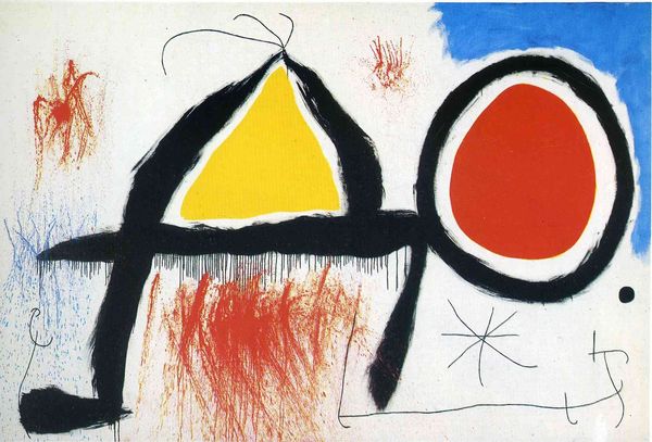 Joan Miró made this lithograph, 'Bird in the Night,' using ink on paper. These are, of course, traditional art materials. But here, they're put to work in a deliberately artless manner. Look at the flat, almost stenciled planes of color, and the bold outlines. Miró used lithography – a printmaking technique that allows for a direct, almost childlike application of line and form. It's a populist medium, capable of being reproduced in multiples, without too much specialized training. The process has imbued the artwork with spontaneity, a quality that Miró and other Surrealist artists prized. Yet, it is important to remember that even apparent naivety is a kind of skill. Miró had to master the lithographic process to make it appear so effortless, so simple. In the end, it's a reminder that all art is made, not born. And the means by which it is made always inflects the final result. This print challenges our conventional understandings of art, labor, and value.