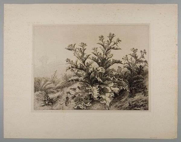 Carl Wilhelm Kolbe rendered "Swamp Plants" with etching, capturing nature's vitality. The dense foliage, each leaf meticulously detailed, evokes an ancient symbol of life's interconnectedness. Consider the 'horror vacui', the fear of empty space, a motif we see echoing through time, from ancient tapestries to Baroque paintings. Here, nature is not serene but teeming, almost overwhelming. The image resonates with the 'prima materia' from alchemical traditions: the formless substance from which all things are created. This abundance can be seen as a reflection of our psychological state, a mirror of the subconscious, where latent fears and desires intertwine. In the human psyche, the swamp may symbolize the depths of our emotions, often murky and unexplored. Yet, it is from these very depths that renewal and transformation emerge, much like the persistent plants in Kolbe's etching. The swamp, therefore, becomes a potent, cyclical metaphor for the continuous unfolding of life.