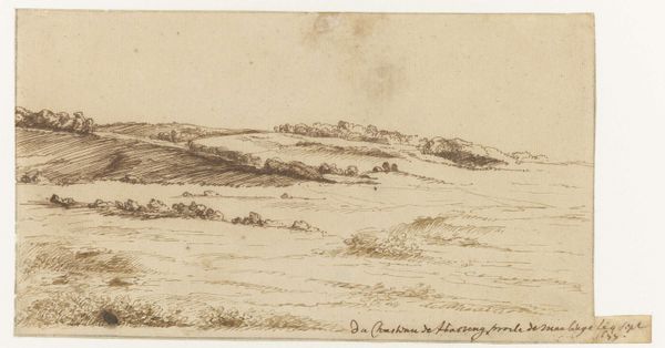 This delicate pen drawing was created by Constantijn Huygens II in 1675, capturing a view between Thieusies and Strépy. Note the church tower emerging amidst the houses: a powerful symbol, marking the center of community and faith, and a visual anchor throughout the landscape, guiding both the eye and the spirit. The depiction of figures in the foreground draws the viewer into the scene. These figures, rendered with simple strokes, evoke a sense of shared humanity, reminding us of our own journeys through life. Consider the ancient Roman architectural depictions, where similar towers appeared, symbols of power and stability. Over time, the tower has been passed down through history, shifting from a symbol of worldly power to one of spiritual authority. The steeple connects the earthly realm to the divine, resonating with a deep subconscious longing for transcendence. In Huygens' rendering, these towers aren't just architectural details; they are emotional lodestones, engaging viewers on a deep, subconscious level. The cyclical progression of the tower in art history resurfaces, evolving in meaning, inviting us to contemplate the intersection of time, memory, and faith.