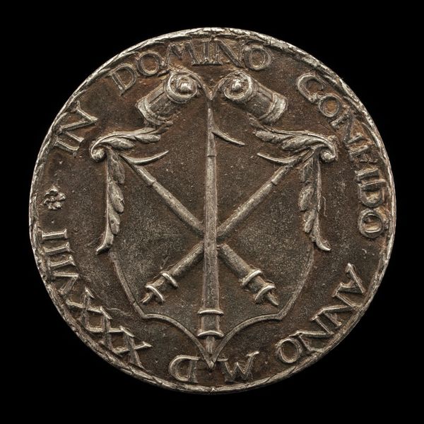 Editor: This is the reverse side of a silver relief medallion entitled "Satirical Head of a Cardinal," dating from around 1540 and made by an anonymous artist. It has such an intriguing texture and what looks to me like, honestly, a really odd visual metaphor! What exactly are we looking at here? Curator: Well, my dear, imagine yourself a fly on the wall in the 16th century. There’s immense political and religious tension bubbling away under the surface – the Reformation is changing everything! This, I think, is where the 'satirical' part comes in. This medal takes a swipe at a high-ranking church official, maybe a Cardinal. Do you notice the cardinal's head also resembling the rear of an animal? Editor: I do see it, yes. Is it a horse or perhaps a donkey? The association seems…rude! Curator: Precisely! The artist is using visual wit to undermine authority, suggesting that behind the dignified facade of power, there’s…well, something rather less noble. It's a miniature power-play, wouldn't you agree? Editor: Definitely! But wouldn’t that be dangerous? Curator: Exactly, anonymity offers some protection, which could be why we don’t know who created this. The Mannerist style adds a layer of complexity, with its exaggerated features and stylized forms amplifying the sense of distortion and unease. Also, the inscription around the edge seems to read something like, “Acting wisely is difficult” in Latin! Editor: So, it's saying it's hard to be wise... unless you’re calling out hypocrisy! Curator: Precisely, or perhaps even when you are a leader. I find these little historical nuggets absolutely captivating – tiny acts of defiance frozen in metal. Don't you? Editor: I do now! The detail and the symbolism are remarkable, even in such a small artwork. Thank you! Curator: My pleasure entirely! Remember, even the smallest object can hold a universe of meaning.