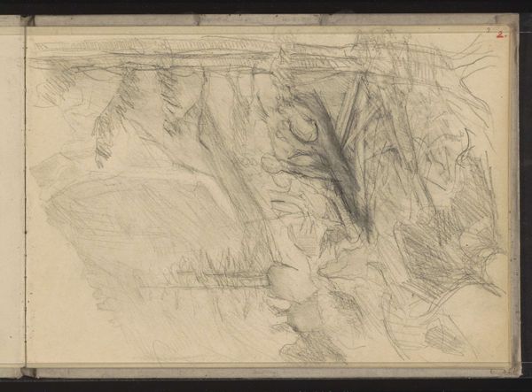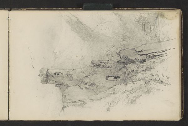 Curator: Jozef Israëls' "Berglandschap met dennen en keien," dating from 1834 to 1911 and residing here at the Rijksmuseum, strikes me immediately with its dynamic composition. The juxtaposition of the pine trees with the imposing rocks suggests a certain ruggedness. Editor: The overwhelming sense of raw material certainly grabs my attention first. Look at the density of the pencil strokes, practically layered on top of one another. You can almost feel the pressure the artist exerted, imbuing a tactile quality to the paper itself. It begs the question—where did he acquire the graphite? Curator: I appreciate your insight into the process. However, the strength of the image lies in its representation. Notice how the composition directs the eye—from the light-filled distance towards the solidity of the rocks. It’s a study in contrasts, no? Editor: Precisely, and I think this is intrinsically linked with the labor and time involved in making it. What narratives of resource extraction or artisanal craftsmanship might lie behind each mark? Moreover, how would the acquisition of the materials impact access and democratization in art creation? It demands such questions of materiality to enhance engagement. Curator: Perhaps. Yet, regardless of graphite origins, it’s the artist's intention that sculpts the composition and evokes particular aesthetic experiences for the observer, which must remain front and center. See how the lines create form and guide you? Editor: But by separating "intention" from the material reality that informs every mark and contour we run the risk of mystifying art, no? We could easily turn back and study how Jozef Israëls procured and prepared his materials. What workshops did he perhaps study within and what apprentices assisted? By addressing materialist concerns in concert with formal aspects, one can appreciate how artistic expression mirrors the conditions of its creation and can tell its broader cultural stories. Curator: Maybe a fusion between the two—process and form—allows one to view the artist’s intent but grounded in a concrete material plane, not purely in a subjective idea alone. Thank you, I have been stimulated and refreshed by your alternative viewpoints. Editor: Agreed. Every stroke reflects a nexus of material, process, and artistic expression that creates unique experiences which we will no doubt return to with the guidance you have brought forward here.
