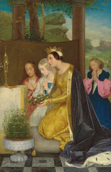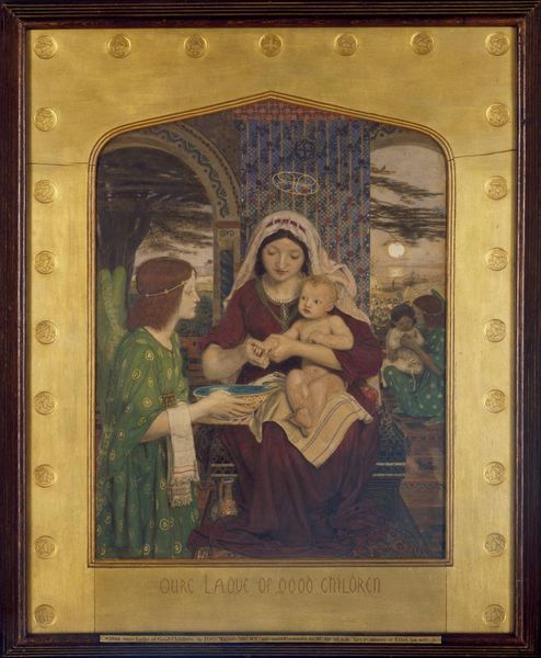 Dante Gabriel Rossetti painted ‘The Childhood of Mary Virgin’ in 1849, during a period of immense social and religious change in Victorian England. Rossetti, influenced by early Italian Renaissance art, presents a scene imbued with symbolism. At first glance, we observe a domestic scene; the young Mary is depicted learning embroidery from her mother, Anne. However, Rossetti challenges traditional representations of women, infusing a sense of quiet strength and purpose. In this space, Mary isn't just a passive figure, but an active participant in her own spiritual development. Look closely, and you’ll see the books beneath the angel, a symbolic reference to wisdom and learning. The artist once said of this artwork, ‘it was to embody the idea of the Blessed Virgin as an ordinary human being, brought up with humble surroundings.’ In this work, Rossetti invites us to reflect on the humanity of religious figures, and consider the strength and resilience found in the everyday experiences of women.
