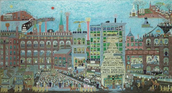 Robert Qualters made this painting, *Spring Bridge*, and it's like the whole city of Pittsburgh is bursting forth in juicy daubs of colour. The thick paint, it's not just representing something, it *is* something, like the landscape itself. The way he layers those greens and browns, you can almost smell the damp earth of the hillside. And those figures, all a flurry of movement across the bridge, feel like they're part of the same vibrant energy. Look at the bottom left corner, the cyclist, a blur of blue and red, so full of life, he could fall right out of the frame. It's all so spontaneous and free. Qualters reminds me a bit of Red Grooms, that same love of place and people, that same embrace of the messy, joyful reality of everyday life. It's a celebration, not just of spring, but of painting itself.