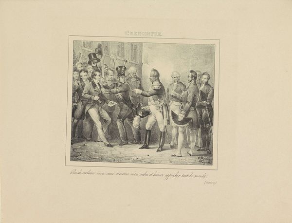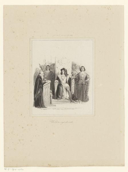 Jan Dam Steuerwald created this print, "The Self-Sacrifice of Reverend Hambroeck on Formosa, 1661," in the nineteenth century. Immediately, the eye is drawn to the interplay between light and shadow, which articulates a scene heavy with emotional tension. The grayscale palette reinforces the somber mood, drawing attention to the composition's structural elements. Steuerwald masterfully uses line and form to guide the viewer's gaze, from the distraught figures in the foreground to the stoic clergyman at the center, creating a semiotic narrative about sacrifice. The composition divides the subjects along a spectrum of emotion, challenging fixed meanings of faith and duty. Notice how the texture and the scale of the figures not only enhance the visual impact but also engage with philosophical questions about mortality and moral choice. Here, Steuerwald prompts us to consider how art destabilizes established values, fostering a continuous dialogue between the artwork, its historical context, and our own interpretations.