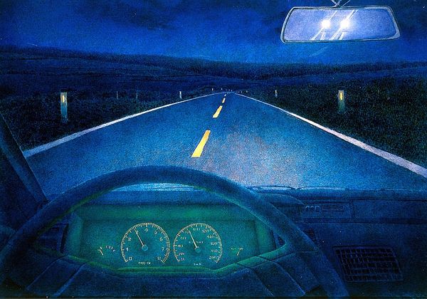Don Ivan Punchatz, an American artist, painted this vision of the future in which cars are fully automated. In the context of accelerating automation in the United States, the painting proposes a future in which people have ample free time, even while traveling. The figures in the foreground play chess, a game of intellectual skill, as they are chauffeured through a pastoral, suburban landscape. Other people are at leisure too. The picture implies a world in which capitalism has solved the problem of scarcity, and a robust social welfare system has allowed the population to develop interests outside of work. Of course, such a future depends on specific political choices. Punchatz's painting invites us to imagine what those might be, and the social conditions that would bring them about. As historians, we might look to publications like the Whole Earth Catalog, manifestos like the Port Huron Statement, or the writings of social critics like Ivan Illich to understand where Punchatz's utopian imagery comes from.