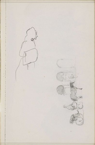 Cornelis Vreedenburgh made this sketch of figures on the beach, probably on location. It's all about the immediacy of the moment, the process of capturing what’s there with a few simple marks. The pencil feels light, almost floating across the page. Look at how the lines define the shapes of the figures. The texture of the paper peeks through, giving it a sense of openness, like the beach itself. There's a beautiful tension between what's defined and what's left to the imagination. Notice how the figures blend into the background, becoming part of the landscape. It reminds me of the early sketches of Manet. This piece is a reminder that art doesn't always need to shout. Sometimes, it can whisper.
