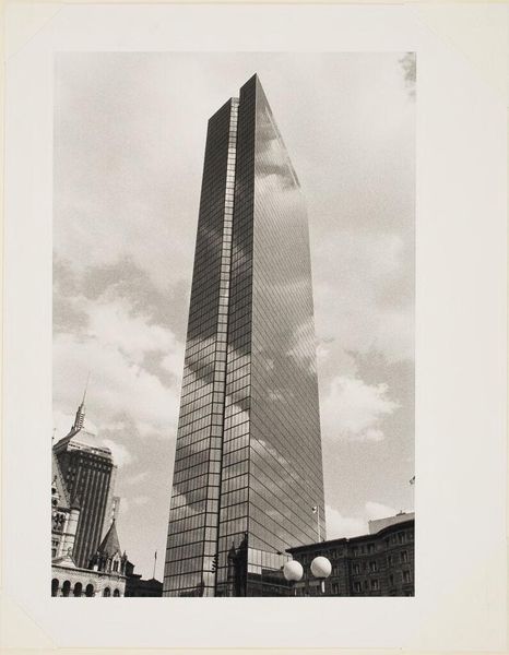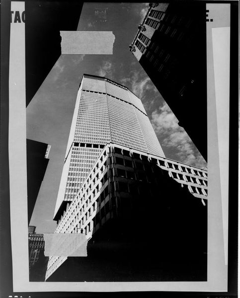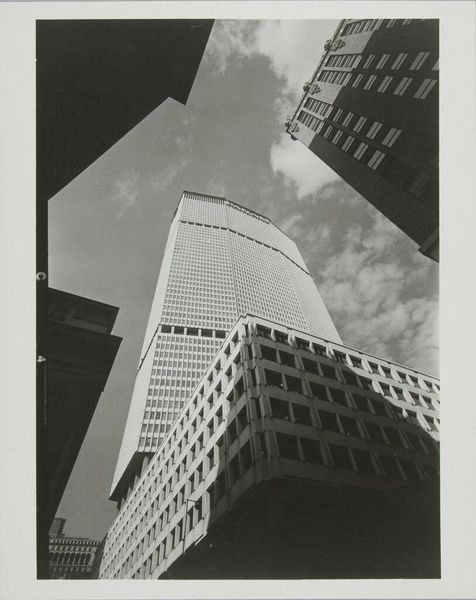 Curator: This is an untitled photograph of the Pan American World Airways Building in New York City, from an unidentified artist. Editor: It feels like a monolith, doesn’t it? Stark, imposing, almost aggressively geometric. The black and white only enhances that sense of power. Curator: Indeed. The building itself became a potent symbol of corporate power and the jet age, especially its location straddling Park Avenue above Grand Central Terminal. Editor: The way the other buildings frame it, like looming shadows, amplifies that feeling. It’s as if it's both supported and threatened by the very city it dominates. Curator: It's fascinating how its presence altered the urban landscape and generated both admiration and controversy regarding architectural preservation. Editor: Yes, the image captures a moment when modernism seemed invincible, before tastes shifted and the symbolic landscape changed. Curator: Reflecting on this image today, the building remains an icon of a particular era, albeit one tinged with complex associations. Editor: It's a poignant reminder of how our relationship with symbols evolves, and how photographs capture those shifting meanings.