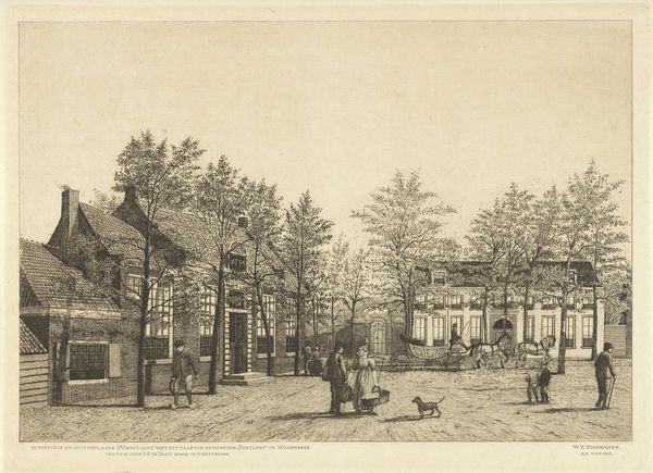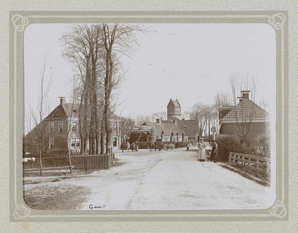 This albumen print, titled 'Brink te Assen' was made by Johannes Gerardus Kramer, who was active in the Netherlands during the late 19th century. This image offers us a glimpse into the social and economic life of a small Dutch town. The 'Brink', or town square, served as a central hub for commerce and community gatherings. Kramer’s photograph captures the architectural simplicity of the buildings surrounding the square, reflecting the area’s provincial character. The presence of bare trees suggests a photograph taken in the colder months. The clarity and detail provided by the albumen printing process allows us to study the fashion and possibly the social standing of the figures present. To fully understand the artwork, one would need to delve into archives, local histories, and period newspapers. Such resources would help clarify the nuances of daily life in Assen and Kramer’s position within that society. The meaning we find in art is always bound up with these wider contexts.