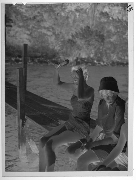 Curator: The composition of this piece, "Untitled (chimp playing the piano)" by Jack Gould, is quite striking in its tonal range, isn’t it? Editor: It's surreal, almost unsettling. That chimp, dressed and posed like that, it evokes so many loaded symbols. Curator: Precisely! The juxtaposition of the animal form with such a distinctly human instrument generates a visual tension, doesn’t it? The strong vertical lines of the tent clash against the curve of the piano. Editor: It makes me think about the history of representing animals in human contexts and what that signifies. The stage set suggests performance, artifice, even exploitation. Curator: Indeed, the photographic grey scale adds another layer of complexity. We lose any vibrant colour to soften the image, allowing us to see the texture in the chimp’s fur. Editor: It certainly does. This photograph is much more than just a whimsical snapshot. Curator: Absolutely. A very interesting piece of formal composition. Editor: Yes, an image that continues to speak volumes.