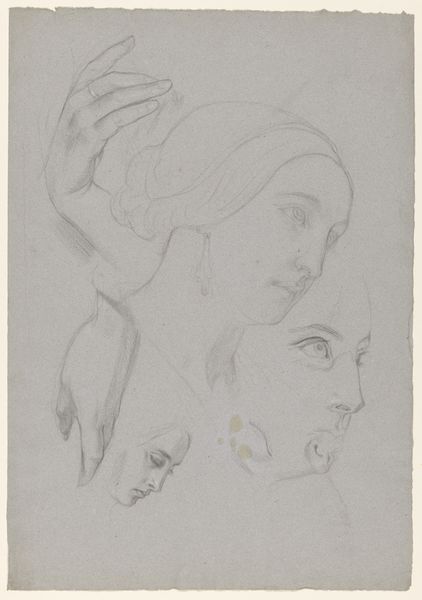 Editor: Here we have L.A. Ring’s "Study after Francesco Laurana’s bust of Eleonora d'Aragona," created between 1893 and 1895. It's a graphite drawing on paper. The delicate lines give the portrait an ethereal quality. What strikes you most about this work? Curator: What I find compelling is the drawing's engagement with materiality at several levels. We have Ring, a Danish artist, choosing to render a three-dimensional sculpture of a historical figure—Eleonora, whose likeness was originally captured in marble—using graphite on paper. What does it mean to reproduce an image across mediums and historical contexts? Editor: I guess it's about accessibility, or perhaps reverence? Ring is studying a masterwork, but how does the act of copying, with different materials, change the meaning? Curator: Exactly! Think about graphite versus marble. Graphite is readily available, easily worked, and relatively inexpensive. Marble, conversely, is quarried, requiring skilled labor and significant expense. Laurana's marble bust was commissioned, signaling Eleonora’s status and wealth. Ring's graphite study, on the other hand, democratizes the image, making it reproducible and accessible to a wider audience. Consider, too, Ring’s choice of paper – a mass-produced commodity in his time. Editor: So the change in materials reflects a shift in social context and consumption, stripping away some of the original artwork’s aura? Curator: Precisely. It transforms the artwork into a commodity itself. Also, the incomplete, sketch-like quality of Ring’s work directs attention to the artistic process – the labor involved in observing and representing form. It’s a study, not a finished product. Editor: I never considered how much the choice of materials shapes our understanding of a piece! Curator: Absolutely. By examining the materials and the means of production, we can uncover layers of meaning beyond just the surface representation. Editor: That's fascinating. It makes me appreciate Ring's work on a whole new level. Curator: It encourages us to look beyond the surface and to think critically about how art is made, distributed, and consumed within specific historical and social contexts.