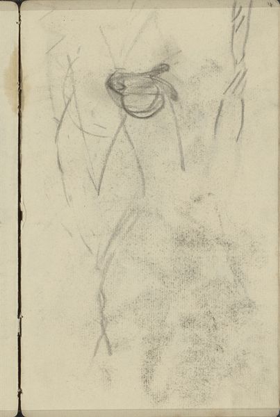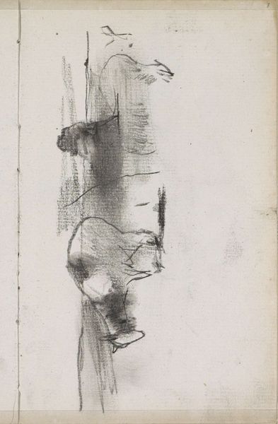 Editor: Here we have George Hendrik Breitner’s "Hunebed," a pencil and graphite drawing from around 1884-1886, housed at the Rijksmuseum. It looks like a preliminary sketch, almost architectural in its blocky shapes. What do you see in this piece? Curator: Immediately, I'm drawn to the labor involved in its creation. Pencil and graphite, humble materials, employed to depict something ancient. Consider the social context: Breitner, part of the late 19th-century art scene, turning to prehistory. Editor: So you’re thinking about the materials in relation to the subject? Curator: Precisely. Graphite, mass-produced through industrial processes, is here used to represent megalithic structures— monuments built through intense physical labor long before industrialization. What kind of exchange does this suggest to you, the act of translating something so ancient through such new materials? Editor: It does feel like a conversation across time, with Breitner using readily available materials to capture something monumental from a bygone era. Was there something radical about sketching natural materials? Curator: In choosing to sketch a dolmen—a monument crafted from raw materials like stone, the antithesis of manufactured products—Breitner calls our attention to those physical materials. His drawing, executed with relatively inexpensive materials, makes this structure accessible to a wider audience. It moves it out of the exclusive domain of landscape painting and places it in a social space, a commentary on labor and society. Editor: I never thought of it that way! Seeing it as more than just a preliminary sketch opens up a new layer of interpretation. Curator: Exactly. It's not just the 'what' but the 'how' and 'why' that give this simple sketch depth. Editor: I’ll definitely consider that going forward.