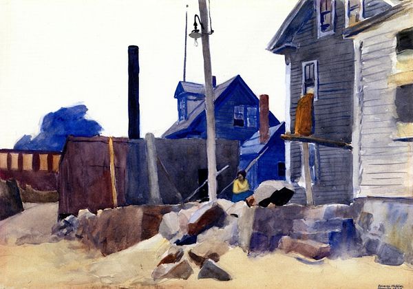 Edward Hopper made this watercolour, “Street Corner”, with who knows what kind of paper and brushes. It’s all about the way he lays down the washes, those translucent layers that build up to a scene that feels so American, so Hopper. Look how the light hits the side of that house, a simple white box with a hint of yellow, the shutters slightly askew. See how that ochre blob is painted in one gesture, just a quick flick of the wrist. It is like Hopper is saying “Yup, that’s what’s here”, and moves on. And the way the colours bleed and blend into each other, it’s like he’s capturing a fleeting moment, a memory fading at the edges. There’s a certain stillness here, but also a sense of movement, like the scene is about to shift, just a little. You might look at something by Charles Burchfield and see a similar American vision going on, but Burchfield’s paintings tend to be a bit wilder, more expressive. Hopper’s got that control, that sense of quiet observation. It’s a conversation between them, I think.