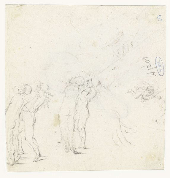 Editor: This is Thomas Stothard's "Groups of Dancing Figures. Verso: Studies of Seated and Other Figures." It looks like a study sheet filled with light, energetic sketches of people. What strikes you about this piece? Curator: Stothard's sketches reveal the Enlightenment’s preoccupation with Neoclassical ideals, particularly the human form and celebratory gatherings. But, considering the social stratification of 18th and 19th-century England, who was invited to these celebrations, and whose bodies were considered worthy of artistic representation? Editor: So, it’s about more than just the figures dancing? Curator: Exactly. It makes you consider whose stories are left out, and how power dynamics influence artistic expression. It’s about interrogating the canon. Editor: That gives me a lot to think about regarding who gets to be represented, and why. Curator: Precisely! And how we can use art history to question those power structures today.