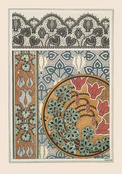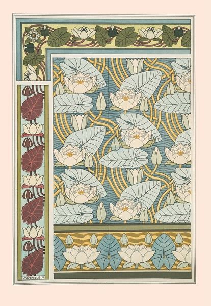 Editor: Here we have Maurice Pillard Verneuil's "Bouton d'or 2," created in 1896. It looks like a study in botanical design, perhaps for textiles or wallpaper. I'm really drawn to the Art Nouveau style, but what do you see in this piece? Curator: Ah, yes! Verneuil invites us into a meticulously crafted garden of pattern and possibility. Imagine yourself as a bee, flitting between these stylized buttercups. What nectar of thought might you gather? To me, this work vibrates with the spirit of its time, a quest to find harmony between nature and industry through decorative motifs. What do you feel are the defining elements of the Art Nouveau style at play? Editor: I see the curving lines, the stylized organic forms... almost like nature trying to escape the constraints of the picture plane. It feels very intentionally designed. Curator: Precisely! It's about controlled exuberance, nature tamed yet celebrated. There is something subtly subversive too. In embracing decoration so wholeheartedly, it rebels against the stark industrial aesthetic that was taking hold. Do you notice how the composition plays with diagonals and compartments? Editor: Now that you mention it, yes! It almost feels like different seasons or times of day captured within one frame. Curator: Beautifully observed. Perhaps Verneuil is inviting us to see the world not as a single, fixed entity, but as a tapestry of interwoven moments and perspectives. Graphic art gave a voice to aesthetics for interior spaces. A new freedom. It tickles my fancy when I consider the intent behind these historical works of art. Editor: I see that now. I was initially taken by the surface appeal of the patterns, but now I see this as a kind of visual manifesto. Thank you for sharing this.
