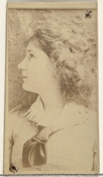 This small card showing Miss Anone was one of a series of actresses printed by the cigarette manufacturer, William S. Kimball & Company. These cards are made through industrial processes: photography, printing, and mass distribution. The sepia tone of the card gives it a sense of nostalgia, while the image itself is a carefully crafted representation of beauty and fame. But the material reality is that this card was produced in vast quantities, inserted into cigarette packs to entice consumers. The relatively low cost and the use of printing processes meant that these images could reach a wide audience, blurring the boundaries between celebrity culture, consumerism, and everyday life. Consider the labor involved in producing these cards on a mass scale, from the photographers and printers to the factory workers who packaged them with cigarettes. By paying attention to the industrial context of this image, we can better understand the complex relationship between art, commerce, and society in the late 19th century.