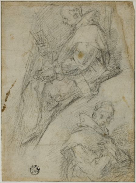 Johann Baptist Zimmermann rendered these two holy figures with a crucifix in pencil, capturing the essence of faith through potent symbols. The crucifix is central, a visual anchor signifying sacrifice and redemption in Christian iconography. The act of holding or displaying the crucifix connects to a lineage of religious art, from medieval icons to Renaissance paintings, each iteration reinforcing its spiritual weight. It is interesting to observe how the crucifix appears across cultures, sometimes as a symbol of hope, other times of mourning, yet always charged with the power to evoke deep emotional responses. The crucifix’s curved, cyclical journey transcends its immediate religious context, resonating with collective memories of suffering, faith, and transformation.