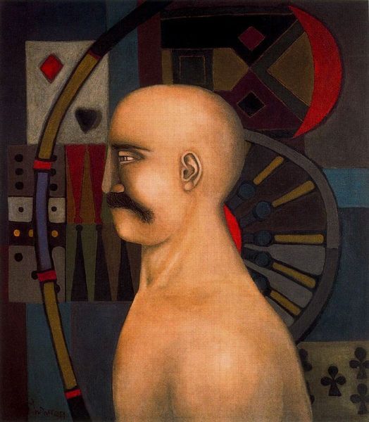 Richard Lindner painted this portrait of Marcel Proust in 1965, using oil on canvas. Lindner, who favored the grit of city life as his subject matter, clearly aimed for something different here. The paint application is smooth, almost airbrushed in places, lending a graphic quality. The formalwear of Proust’s era is rendered into something sharper and more modern, flattening the figure, like a cardboard cutout. Lindner’s distinctive approach to color and form imbues the artwork with a sense of manufactured reality. The almost sinister handling of light and shadow across Proust’s face suggests an interest in the theatricality of identity, a constant performance of the self. Lindner reminds us that even the most seemingly straightforward materials – oil paint and canvas – can be used to explore complex ideas about perception, presentation, and the social construction of identity.