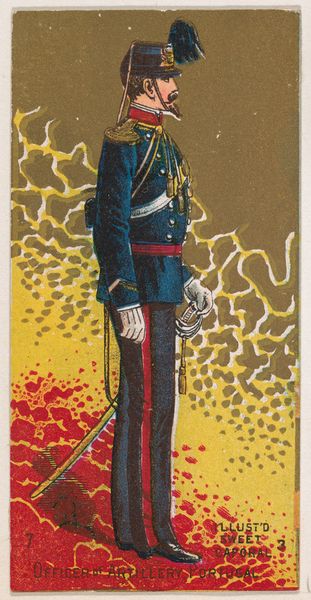 This is "Military Advocate General, Italy, 1886," a chromolithograph card produced by Kinney Brothers Tobacco Company to promote Sweet Caporal Cigarettes. These cards, like so many from this era, offer a glimpse into the late 19th-century fascination with military power and its markers of status. The image presents us with an Italian military figure, resplendent in his uniform, a symbol of authority and national identity. What interests me is the way this small, mass-produced image participates in a larger cultural project of constructing ideals of masculinity and nationhood. Here we see the convergence of commercial interests with the romanticism of military service. The card reflects the emotional investment in military strength, inviting consumers to partake in the imagery of power, one cigarette at a time.