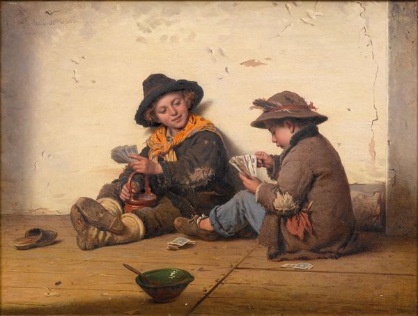 Editor: Manet’s *The Old Musician*, painted in 1862 and now hanging in the National Gallery of Art, presents a curious group of figures. There’s this distinct contrast between the people – some seem like working-class folks and others like they're from the upper class. The old musician himself has a presence of someone who’s experienced hardship and perhaps hope in his life. How do you interpret this work? Curator: The image resonates with echoes of social strata and archetypes, doesn't it? Note how Manet positions the old musician – seemingly a Romani figure, considering his darker complexion and clothing, although contested. Do you see how he acts as a conduit, visually and perhaps symbolically, between disparate societal groups? Editor: I hadn’t thought about him as a conduit before. You mean connecting the street children on the left to the bourgeois figures on the right? Curator: Precisely. The children, with their unidealized poverty, reference a traditional romantic trope, that of the marginalized, yet the bourgeois figures appear almost indifferent, spectators of a different play. Consider the weight of the violin – not merely an instrument, but a symbol of his culture, his very being. He is essentially carrying his history, his traditions and trying to make it understandable to others. Don't you find it all deeply poignant? Editor: Absolutely. There's such a powerful contrast between the vitality of his music-making and the detached expressions around him. What I initially saw as just a group portrait feels much deeper now, a reflection on societal divisions and cultural memory. Curator: Yes, and through that reflection, we’re invited to consider our own roles as observers and participants in this ever-evolving human drama. Thank you for bringing your fresh perspective to this powerful work.