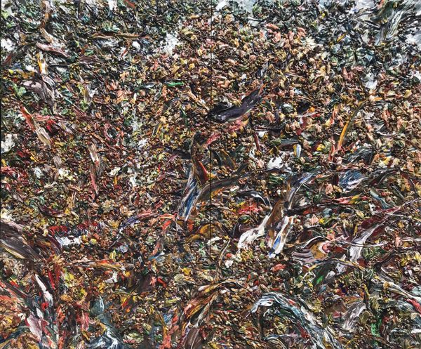 百年屋脊, or "Centennial Ridge," is a textured painting made by 王新福, or Wang Xingfu, using expressive brushstrokes with thick oil paint. Here, the tactile quality of the paint is paramount; the impasto surface of the painting creates a topography of peaks and valleys that catch the light, adding depth and movement to the composition. The process of layering paint becomes a record of the artist's physical engagement with the canvas. The choice of oil paint is significant, connecting the work to centuries of artistic tradition, but the way it is applied, almost sculpturally, pushes beyond conventional techniques. This approach blurs the boundaries between painting and sculpture, emphasizing the materiality of the medium itself. The labor-intensive process mirrors the work involved in building and maintaining a physical structure. Ultimately, the painting invites us to reconsider our understanding of artistic skill, recognizing the value of both physical effort and conceptual vision.