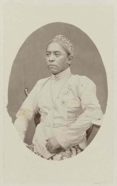 Curator: This photograph, titled "Portret van een Meisje," which translates to "Portrait of a Girl," was taken around 1880. It is a gelatin-silver print by Woodbury & Page, currently held at the Rijksmuseum. Editor: My immediate thought is how powerfully present this young woman seems. The starkness of the print emphasizes the texture of her hair and the simple cloth of her blouse. You can almost feel the weight and humidity. Curator: Precisely! This studio, Woodbury & Page, operated primarily in Indonesia. Works such as this offer a window into the visual representation of people under colonial rule. It is far more than an innocent portrait. Editor: Right. This piece embodies both documentation and representation, but let’s not ignore the labor inherent in producing these gelatin-silver prints. The technical process itself becomes part of the social context. There’s an alchemy in turning raw materials into this finished object. The chemistry, the timing, it is a true craft. Curator: Absolutely. And consider how such portraits were often circulated—who consumed them, and what purposes did they serve? Understanding these power dynamics is crucial. Who had access to this image, and what narratives did it reinforce? Editor: Good point. This photograph raises questions about exoticism and commodity. We need to also examine how the production of these prints played into a colonial economy of extraction. What materials were sourced, and whose labor was involved, and at what cost? Curator: The gaze is what intrigues me. It challenges simplistic interpretations of Orientalism. There is something dignified and knowing in it. What’s so interesting is the resistance to complete objectification through photography. The portrait transcends simply reducing her to an anthropological curiosity or ethnographic data. Editor: Agreed, although, while some people would admire its artistry, the materials, their extraction, the process of developing and printing—these elements are rarely acknowledged in terms of how much exploitation factored into the artistic end result, like this portrait. Curator: It is such images that reveal layers of social, cultural, and historical context. I mean, think of the ways it challenges traditional museum practices. Editor: Right, from a materials perspective, we should try to keep our gaze on the whole complex assemblage: not just the image, but everything involved.