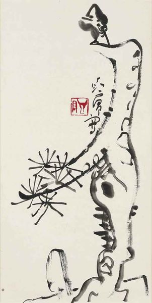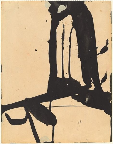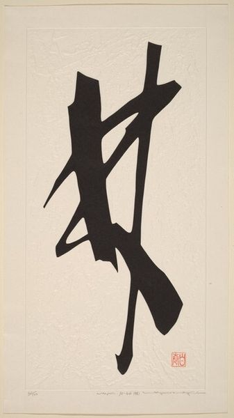 Editor: So, here we have Alfred Freddy Krupa’s "Lovers" from 2013. It looks like ink on paper. I find the image almost stark, but in a calming way – almost like a Japanese print. What do you see in this piece? Curator: This work speaks to me about the power dynamics inherent in relationships. Note the use of stark black ink, reminiscent of traditional calligraphy, which brings with it a loaded history of cultural and patriarchal narratives. How do these tree-like figures, seemingly intertwined, represent vulnerability versus dominance? Editor: Dominance? I just saw them as holding each other. But I see what you mean about the figures; one is much thicker and more upright than the other. Curator: Exactly. Think about the way the "thicker" tree provides both support and potential constraint to the "thinner" one. Is this codependency? Is it symbiosis? Or perhaps, is it a visual commentary on the uneven distribution of power often embedded in intimate connections, reflecting larger societal imbalances? Do you notice any possible dialogue between masculinity and femininity through form, weight, line? Editor: I hadn't thought of that, but now that you mention it, the heavier, thicker tree form *does* read as more masculine. So, the "lovers" could be burdened and entangled by power? Curator: It makes me consider the systemic issues of oppression – historical burdens – on such connections. And maybe that art-making offers tools for unpacking these issues? Ultimately it's not about arriving at any singular definitive meaning, but about allowing the work to provoke questions. Editor: That's fascinating. I’ll definitely be looking at abstract works in a new light after this. Curator: I agree; the capacity of abstract visual language to speak to power in interpersonal dynamics while acknowledging systemic oppressions offers insight for broader societal struggles for balance.